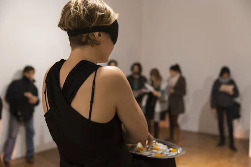 In all three of these works, the blindfolded body is used as a strategy that breaks traditional witnessing and viewing behaviors that are often a consequence of “performance art’s” close semantic proximity to “performing arts.” In Wish You Were Here, Liability of body, Language of liability, and Marking Time, the audiences are not only considered, but positioned as active collaborators that are invited to engage in the creative processes necessary for these three works to be realized.